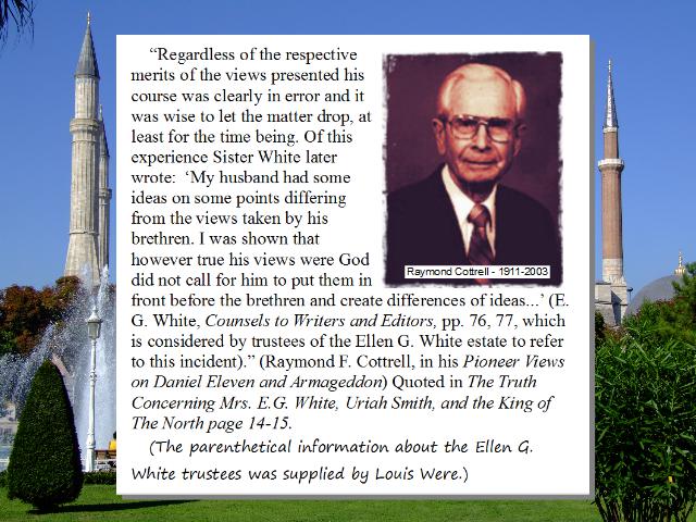 The idea that Cottrell and Were are trying to get across is that even though Ellen White rebuked James for disagreeing with Smith, she didn’t identify who was correct in his views because Uriah Smith was wrong. Normally you would make the assumption that the one rebuked was wrong but they are trying to twist it the other way, making for a very confusing muddle of the history.